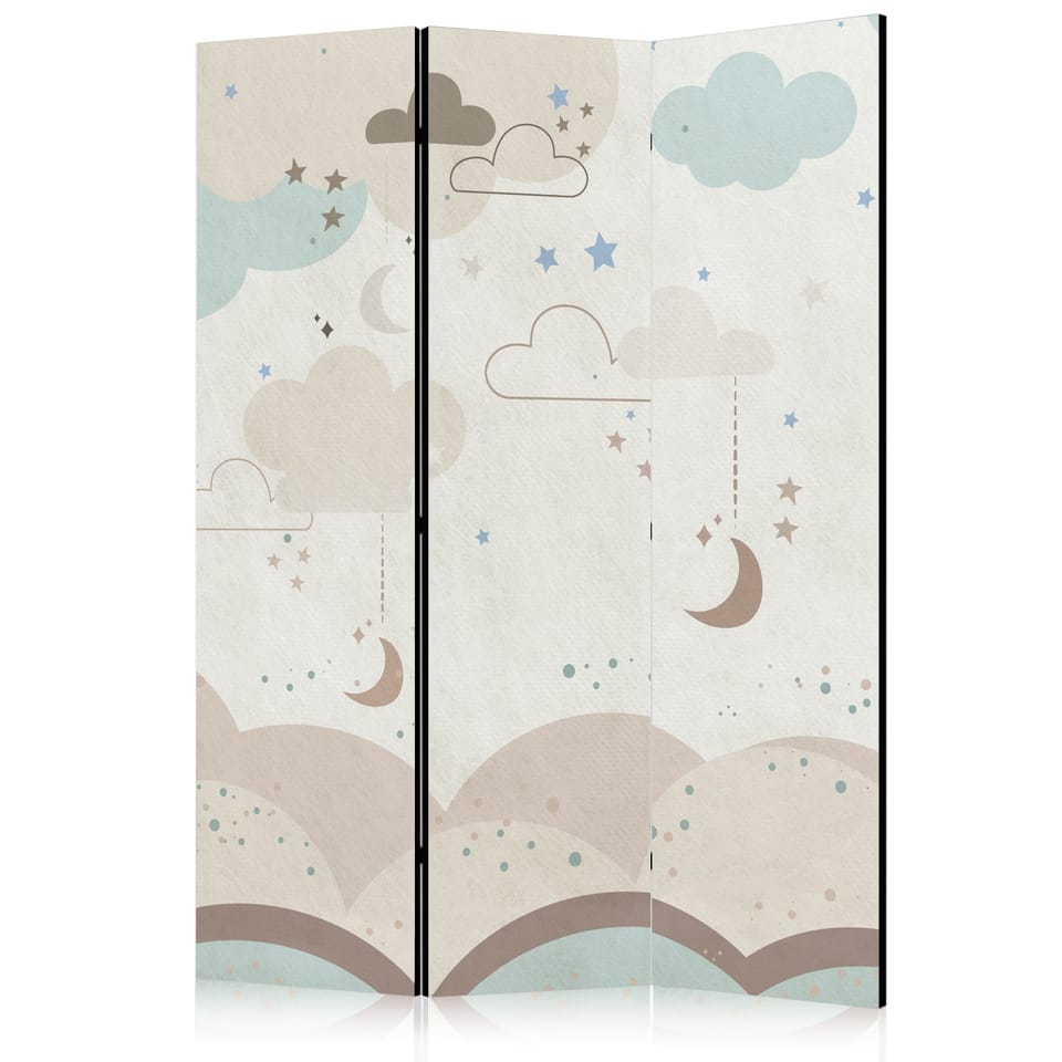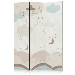 Parawan - Pochmurne nocne niebo - Księżyce w brązach i beżach pośród licznych chmur oraz gwiazdek na jasnym tle rozmiar 135x172, wykończenie Akustyczny