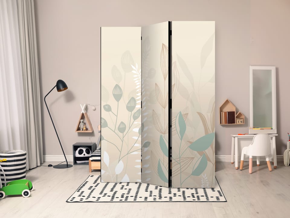 Parawan - Poranek na polanie - różnorodne pastelowe rośliny na beżowym tle rozmiar 135x172, wykończenie Dwustronny