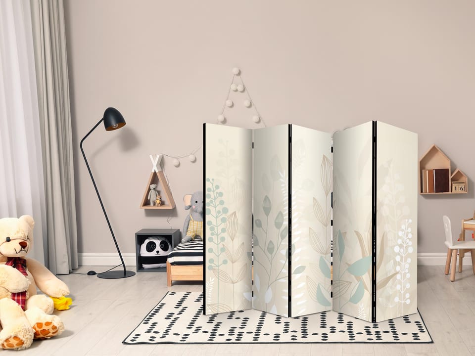 Parawan - Poranek na polanie - różnorodne pastelowe rośliny na beżowym tle rozmiar 225x172, wykończenie Dwustronny