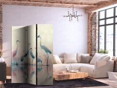 Parawan - Ptaki nad jeziorem - czaple malowane akwarelą w delikatnej, szaro-różowej kolorystyce rozmiar 135x172, wykończenie Dwustronny