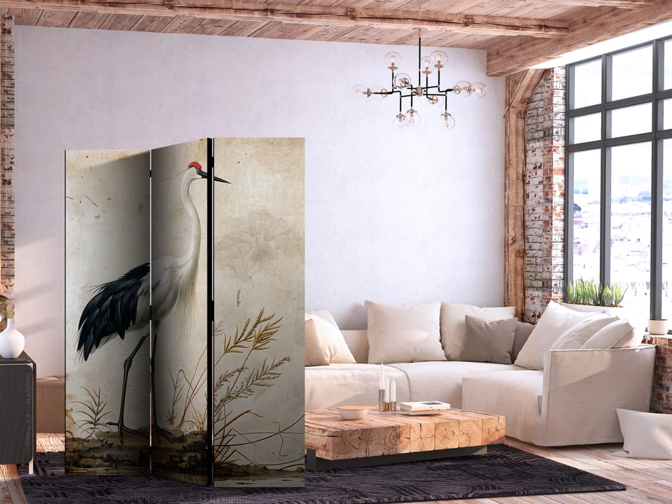 Parawan - Ptaki ze starej ryciny - ilustracja w stylu vintage, przedstawiająca czaplę i żurawia rozmiar 135x172, wykończenie Dwustronny
