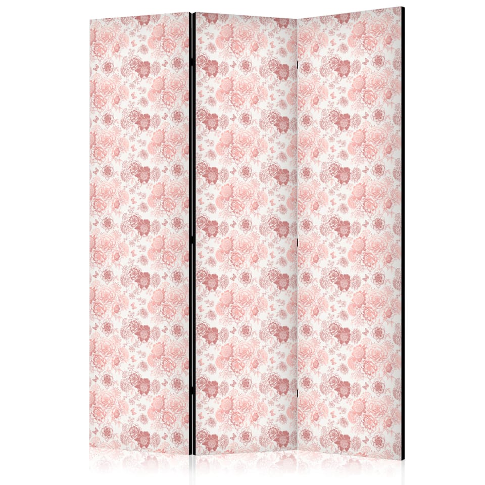 Parawan - Różowe rozkwitanie - kwiaty w ciepłych kolorach na białym tle rozmiar 135x172, wykończenie Akustyczny