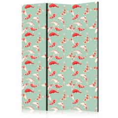 Parawan - Rybki i japoński wzór - Rybki Koi w pomarańczowo-kremowych kolorach na zielono-miętowym tle z orientalnym wzorem rozmiar 135x172, wykończenie Akustyczny