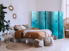 Parawan - Rybki Koi pod taflą wody - Gromada japońskich ryb w głębinach stawu w odcieniach granatu i błękitu rozmiar 225x172, wykończenie Jednostronny