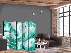 Parawan - Rybki Koi wśród fal - Japońskie ryby pośród fal w odcieniach turkusu i bieli rozmiar 225x172, wykończenie Akustyczny