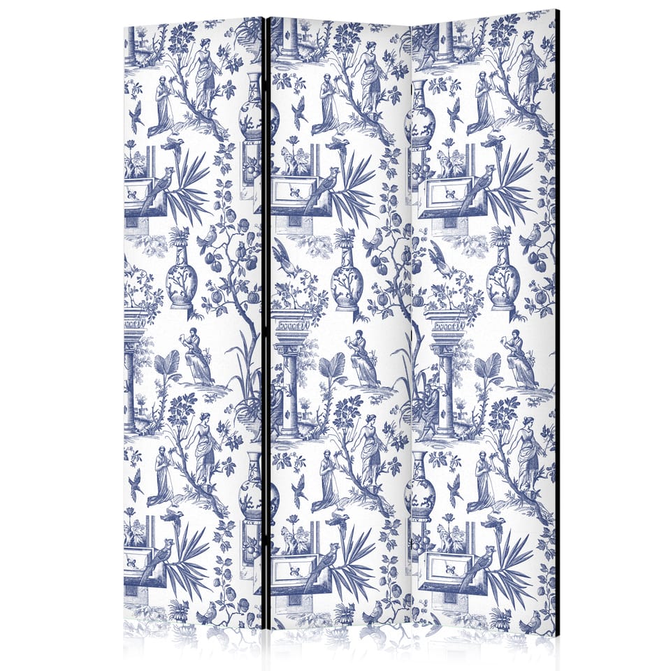 Parawan - Rzym i botanika - niebieski wzór z motywem greckim i roślinnym rozmiar 135x172, wykończenie Akustyczny