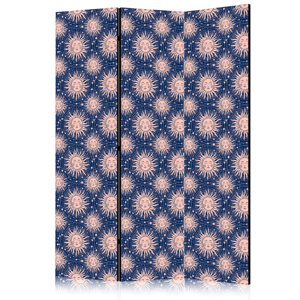 Parawan - Słoneczne Wzory - powtarzający się motyw słońca na granatowym tle rozmiar 135x172, wykończenie Akustyczny