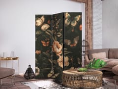 Parawan - Tajemniczy ogród - motyle latające nad kwiatami - rustykalny wieczór rozmiar 135x172, wykończenie Dwustronny