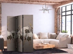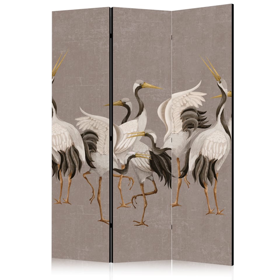 Parawan - Taniec żurawi - jasne sylwetki ptaków na ciepło-szarym tle z fakturą rozmiar 135x172, wykończenie Akustyczny