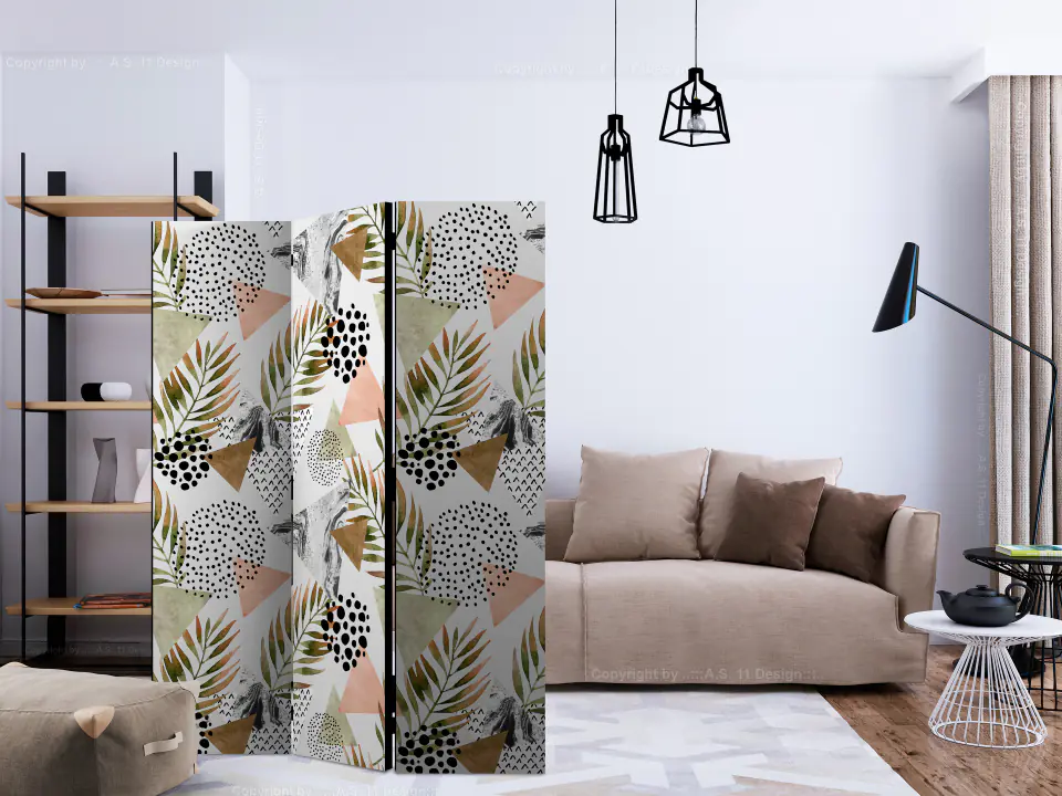 Parawan - Tropikalna geometria [Room Dividers] rozmiar 135x172, wykończenie Akustyczny