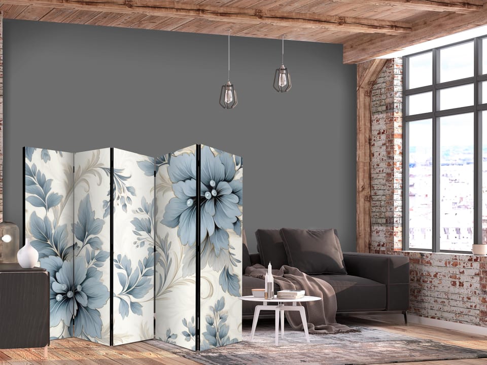 Parawan - Turkusowe kwiaty w retro klimacie; florystyczne ornamenty rozmiar 225x172, wykończenie Akustyczny