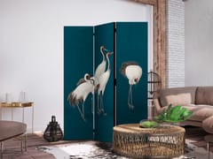 Parawan - Wieczór nad stawem - grupa żurawi narysowana suchą pastelą, na ciemno-turkusowym tle rozmiar 135x172, wykończenie Dwustronny