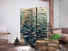 Parawan - Życie w oceanie - Podwodny świat ryb i roślinności w kolorystyce beżowej i granatowej w stylu retro rozmiar 135x172, wykończenie Jednostronny