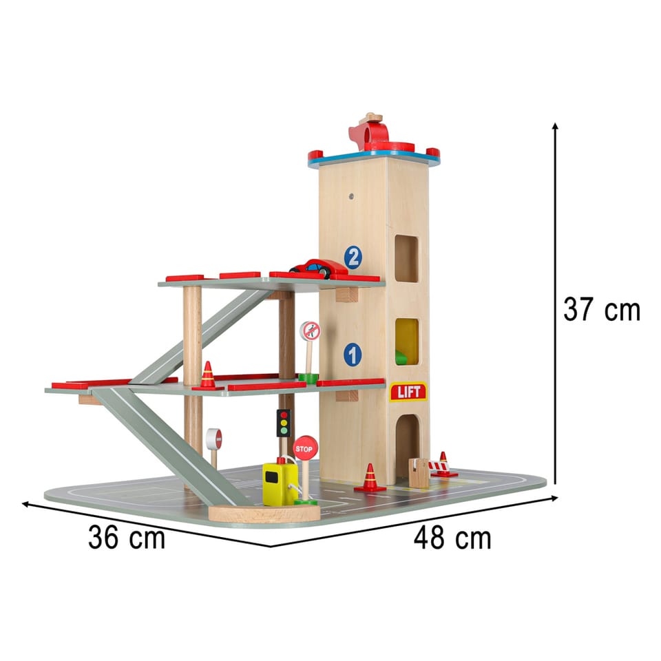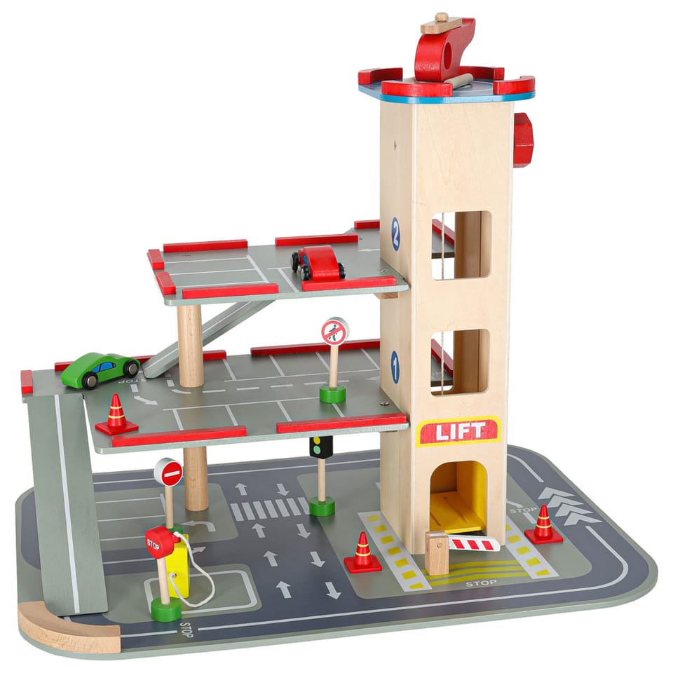 Przepiękny drewniany garaż miejski ma aż cztery poziomy! Pierwsze trzy przeznaczone są dla aut - znajdzie się tam miejsce dla drewnianych samochodzików dołączonych do zestawu, a także wielu innych pojazdów Twojego dziecka. Na kolejne piętra dostaną się one przy pomocy windy!