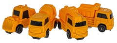 - części konstrukcyjne parkingu, - ruchomy dźwig, - 4 samochodziki budowlane: wywrotka, koparka, betoniarka, spychacz, - 12 imitacji kamieni, - 4 znaki drogowe, - 2 dystrybutory paliwa, - naklejki dekoracyjne, - instrukcja.