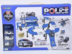 parking policyjny, 52 części, 4 pojazdy metalowe; 52x35x7cm, W/B