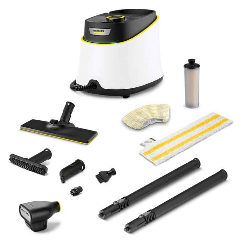 Parownica SC 3 Deluxe Textile Edition jest gotowa do pracy po zaledwie 30 sekundach nagrzewania i eliminuje do 99,999% wirusów i 99,99% wszystkich typowych bakterii domowych z twardych powierzchni. Szeroka gama akcesoriów pozwala również usuwać uporczywe zanieczyszczenia z płytek, płyt grzewczych i okapów, a także z wszelkiego rodzaju zakamarków. Dysza podłogowa EasyFix z elastycznym przegubem i technologią lameli zapewnia doskonałą ergonomię i doskonałe rezultaty czyszczenia. Dzięki systemowi mocowania na rzep zapewniającemu dodatkową wygodę, ściereczkę do czyszczenia posadzek można łatwo przymocować i zdjąć później bez konieczności kontaktu z zanieczyszczeniami. Parownica do ubrań Textile Edition wygładza zagniecenia odzieży za pomocą pary, zapewniając imponujące efekty, a także jest idealna do odświeżania tkanin. Dwustopniowa regulacja pary gwarantuje, że jej strumień jest za każdym razem idealnie dostosowany do materiału i poziomu zanieczyszczenia. Zintegrowany schowek na akcesoria w samym urządzeniu zapewnia prosty i wygodny sposób przechowywania akcesoriów, kabli i węży. Inne funkcje obejmują zintegrowany wkład odkamieniający, zbiornik na wodę, który można napełniać, kiedy jest to potrzebne, aby zapewnić nieprzerwane czyszczenie, a także pasek LED wskazujący tryby pracy.