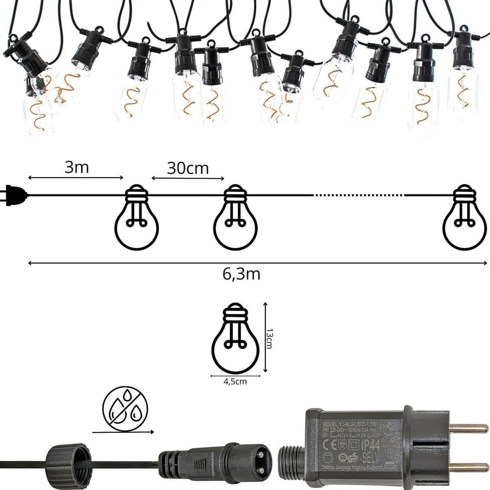 Długość całkowita girlandy 6,3 metra i odstępy co 30 cm sprawiają, że świetnie sprawdza się w różnych aranżacjach – możesz ją rozwiesić wzdłuż tarasu, opleść wokół altany, zamocować na pergoli lub rozciągnąć między drzewami. Optymalny odstęp 30 cm pomiędzy żarówkami zapewnia równomierne oświetlenie, nadając przestrzeni harmonijny i elegancki wygląd.