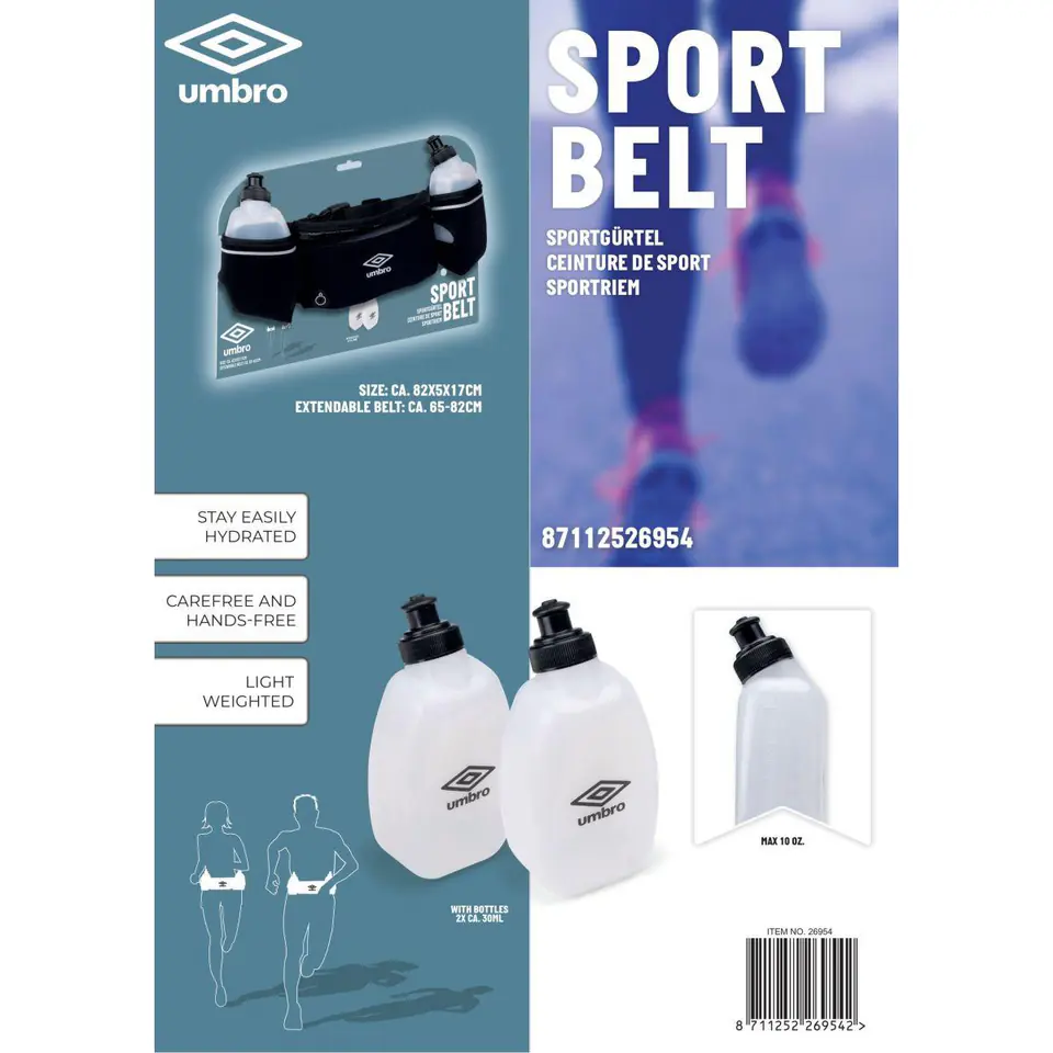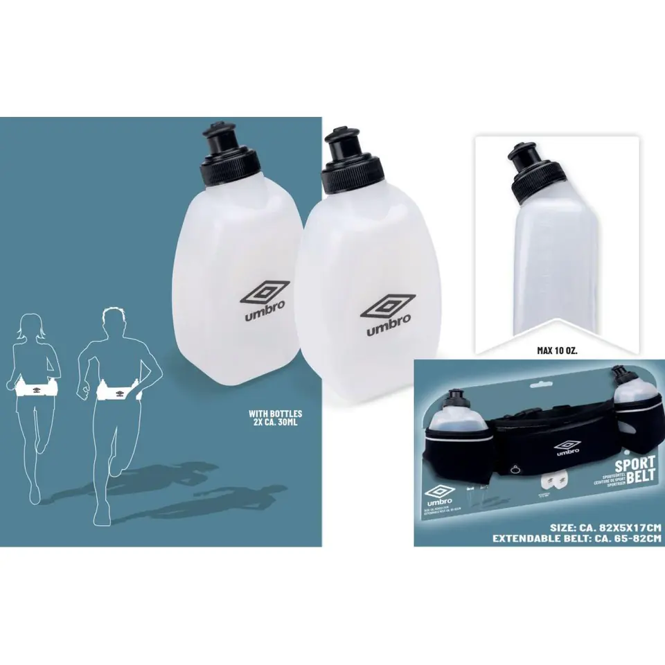 PAS BIODROWY Z BIDONAMI DO BIEGANIA 2x300ML UMBRO będzie idealnym dodatkiem podczas biegania, trekkingu, jazdy na rowerze czy podczas uprawiana nordic walking.