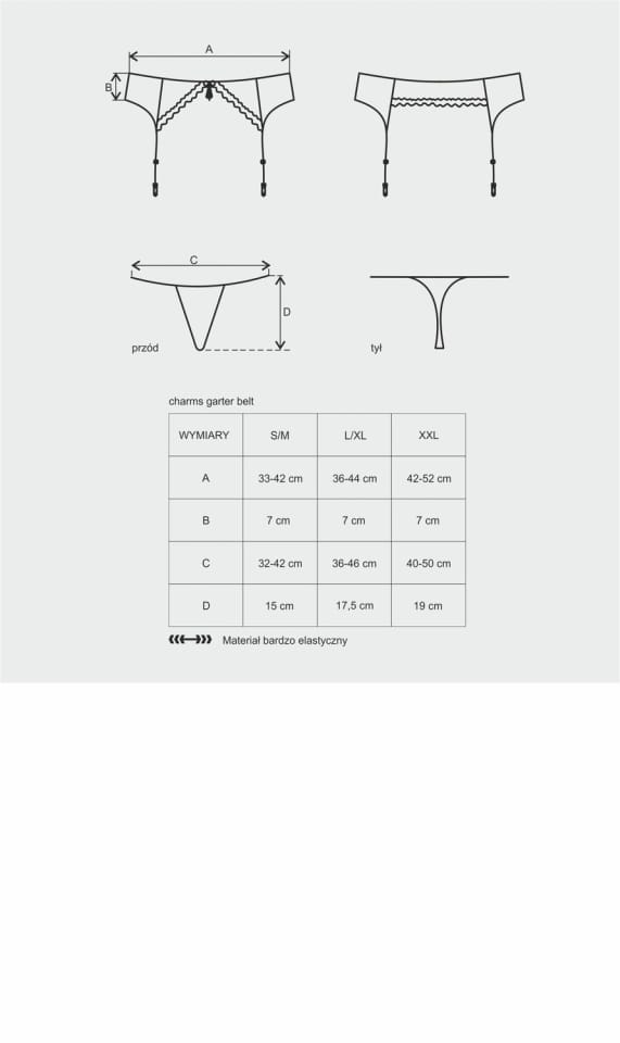 Pas do pończoch Charms + stringi GRATIS! Czarny Rozmiar L/XL