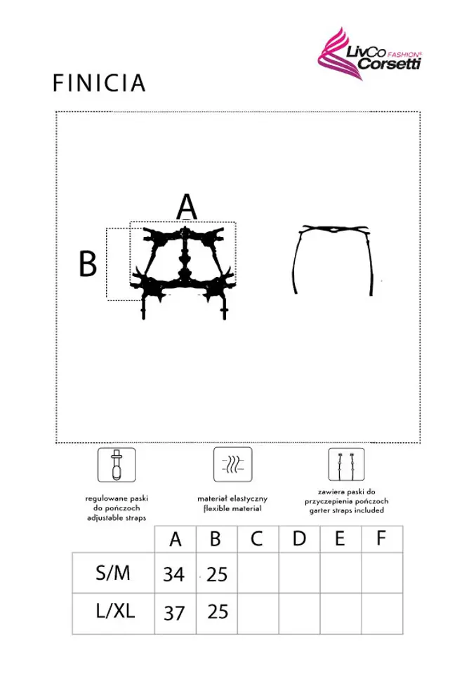 Pas do pończoch Finicia Black Czarny LivCo Corsetti Fashion rozmiar - S/M