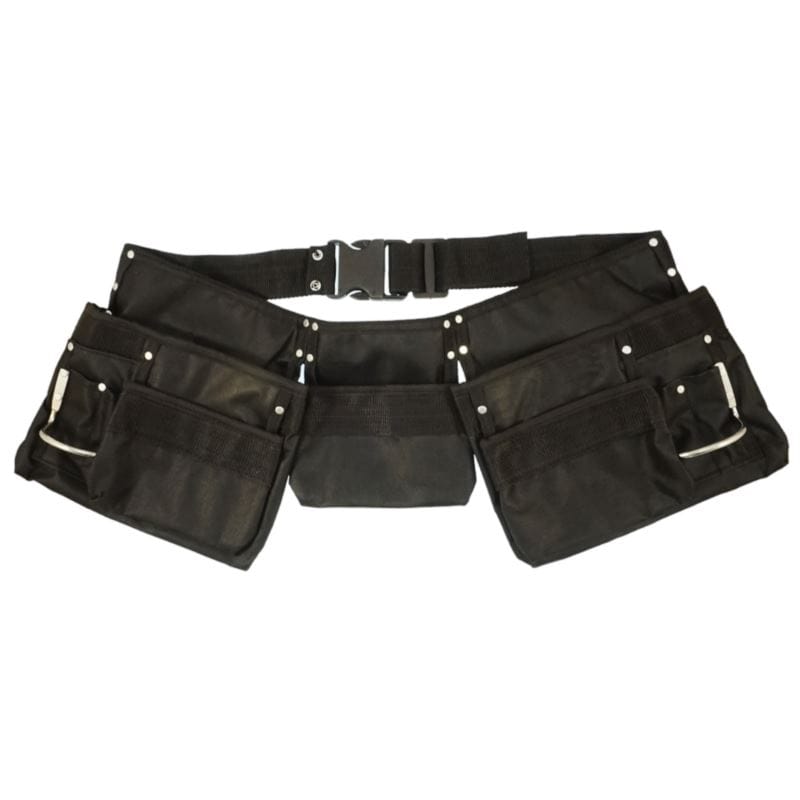 Pas posiada 11 kieszeni, w tym 4 kieszenie na gwoździe i drobne elementy oraz 7 kieszeni na narzędzia. Ponadto dwa uchwyty na młotek lub siekierę, itp oraz uchwyt na taśmę mierniczą.