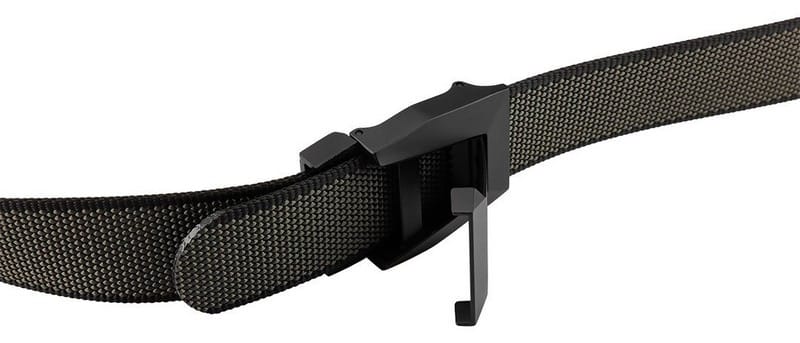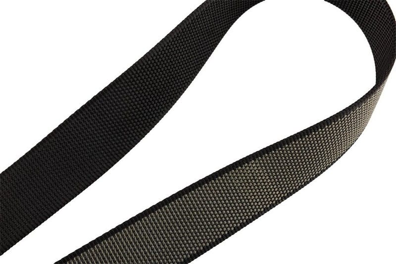 Wykonany z poliestru, posiada dwukolorową konstrukcję – czarną i szarą, pozwalając na użytkowanie paska z obu stron.