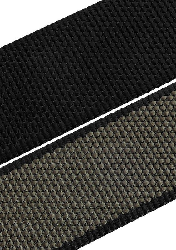 Wykonany z poliestru, posiada dwukolorową konstrukcję – czarną i szarą, pozwalając na użytkowanie paska z obu stron.