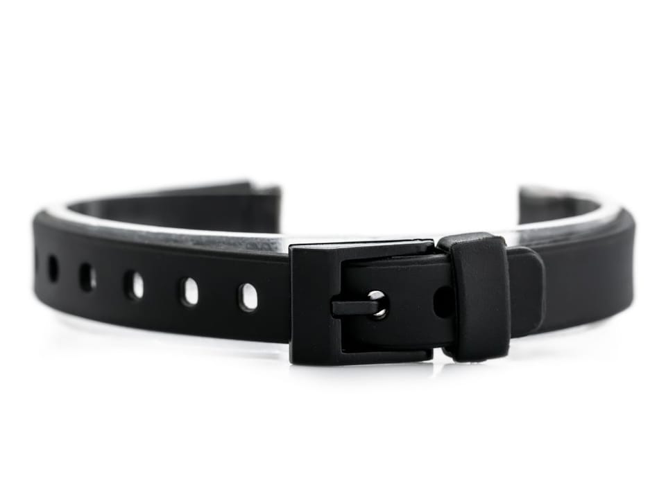 Pasek z gumy PCV w kolorze czarnym.
