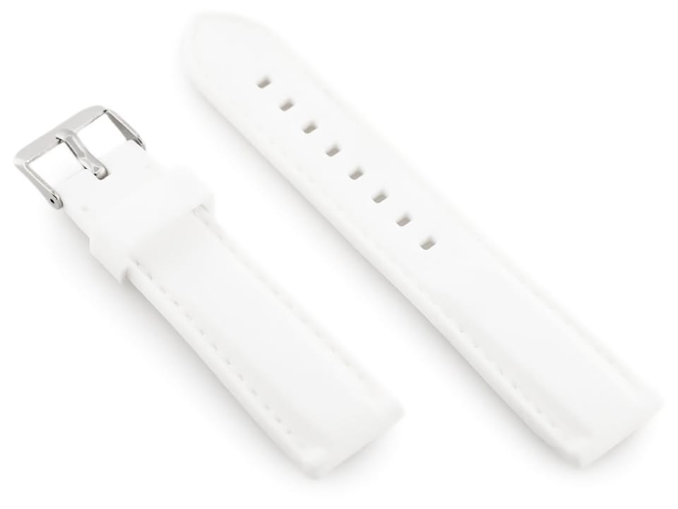 Gumowy pasek w kolorze białym z białymi przeszyciami.