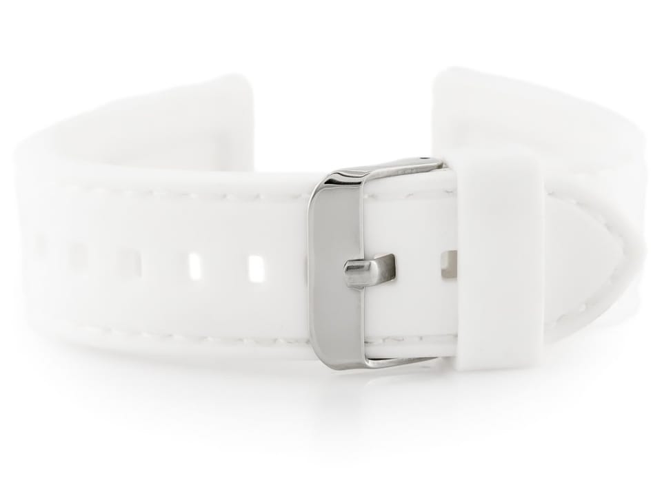 Gumowy pasek w kolorze białym z białymi przeszyciami.