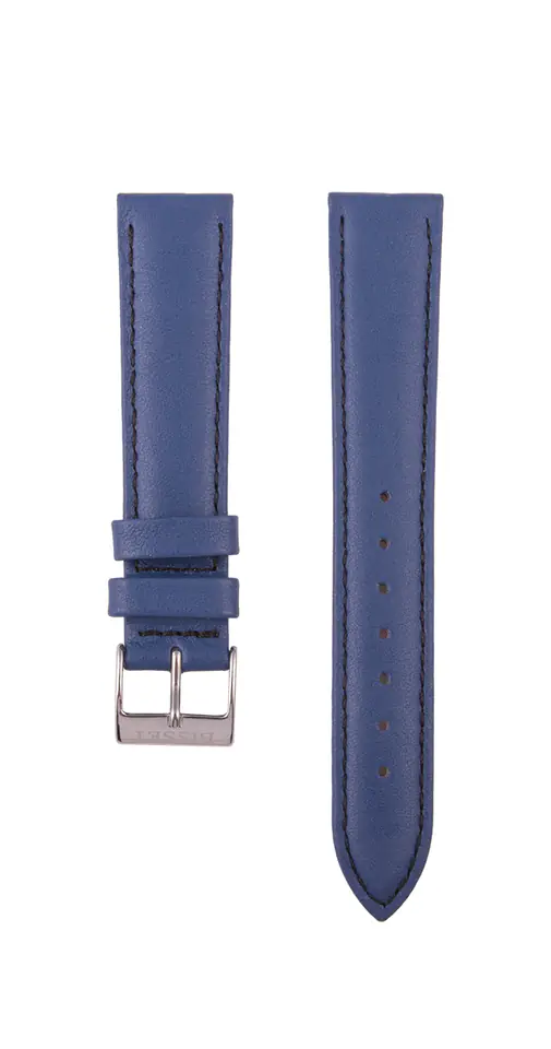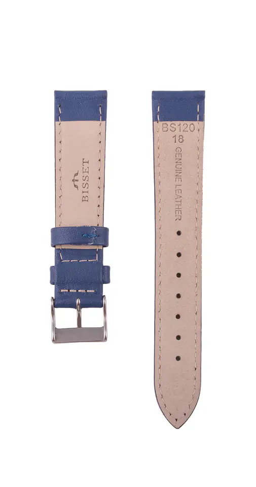 Pasek ze skóry naturalnej w kolorze granatowym z granatowymi przeszyciami. Klamerka ze stali szlachetnej w kolorze srebrnym.