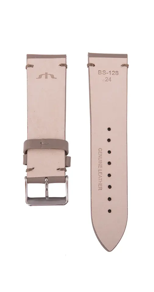 Pasek ze skóry naturalnej w kolorze szarym. Klamerka ze stali szlachetnej w kolorze srebrnym.