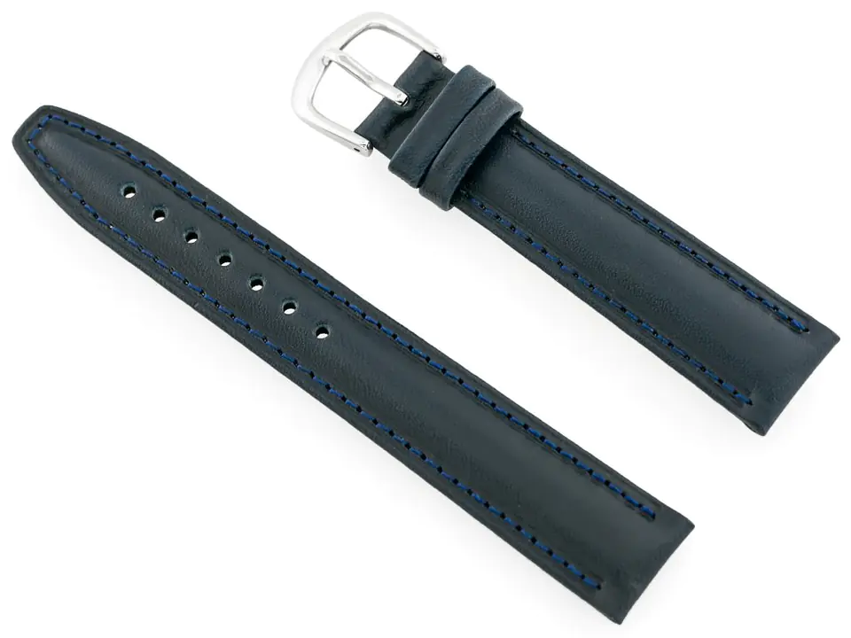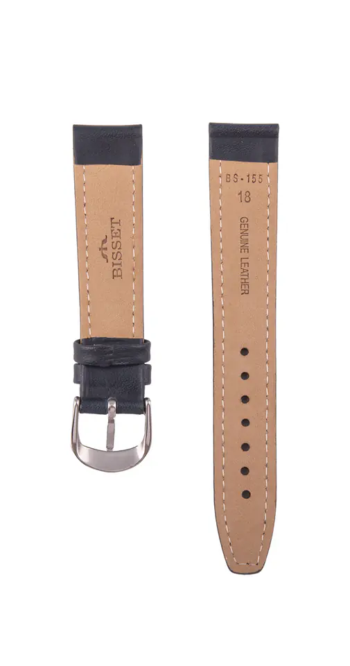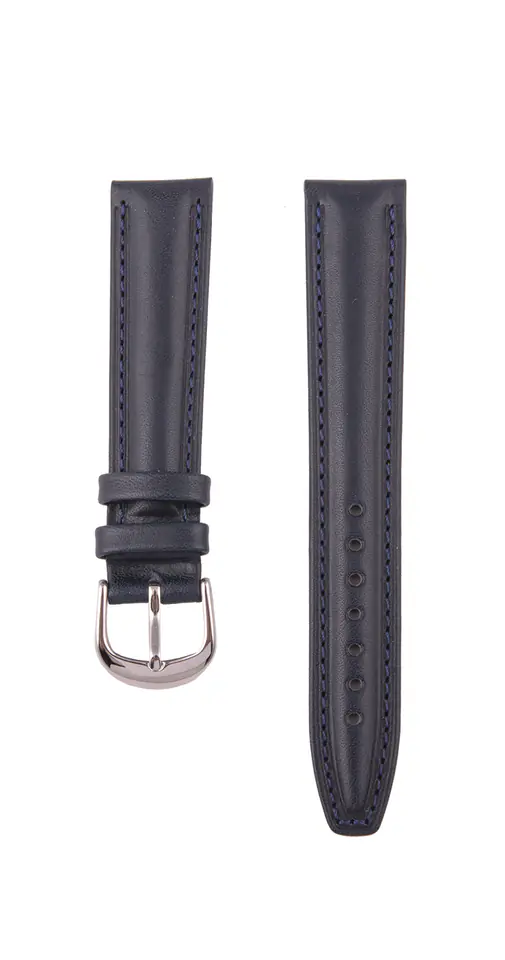 Pasek ze skóry naturalnej w kolorze granatowym z granatowymi przeszyciami. Klamerka ze stali szlachetnej w kolorze srebrnym.