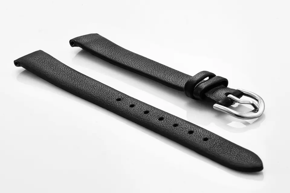Pasek ze skóry naturalnej w kolorze czarnym. Klamerka ze stali szlachetnej w kolorze srebrnym.
