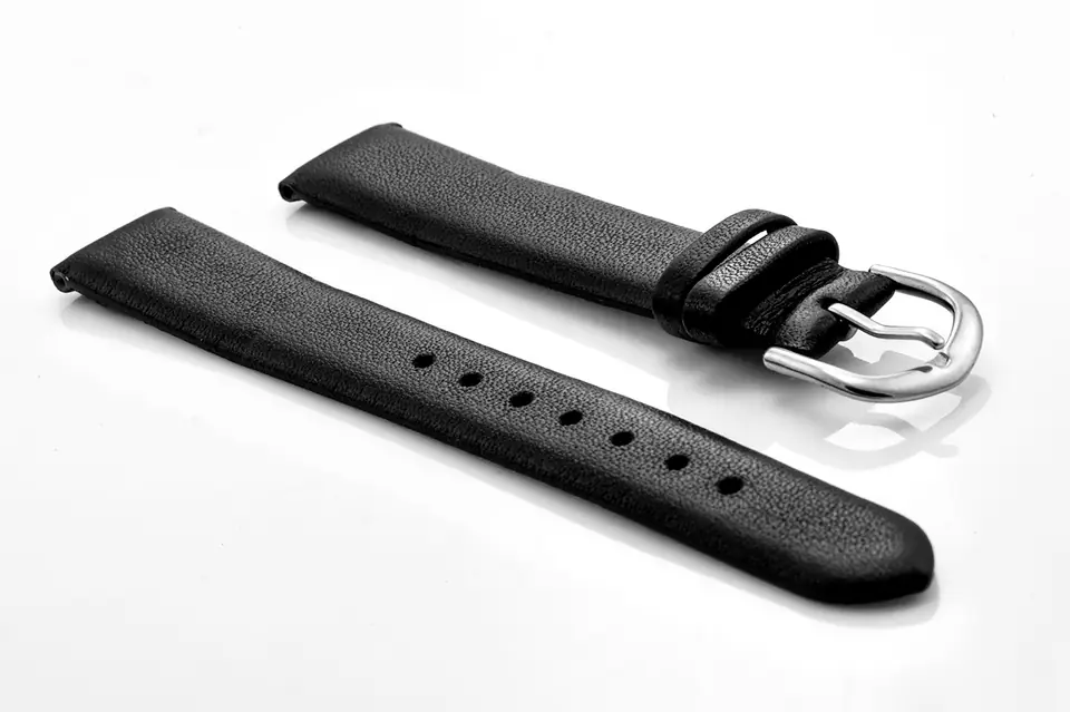 Pasek ze skóry naturalnej w kolorze czarnym. Klamerka ze stali szlachetnej w kolorze srebrnym.
