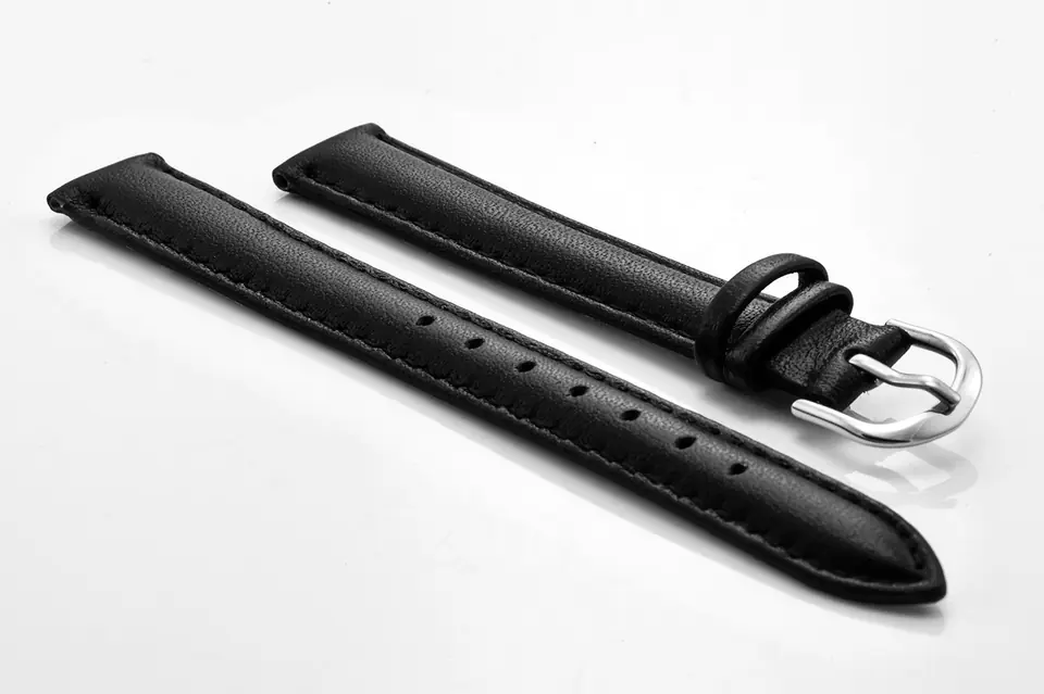 Pasek ze skóry naturalnej w kolorze czarnym z czarnymi przeszyciami. Klamerka ze stali szlachetnej w kolorze srebrnym.