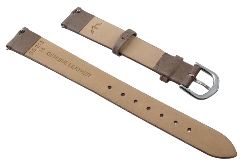 Pasek ze skóry naturalnej w kolorze jasnobrązowym. Klamerka ze stali szlachetnej w kolorze srebrnym.