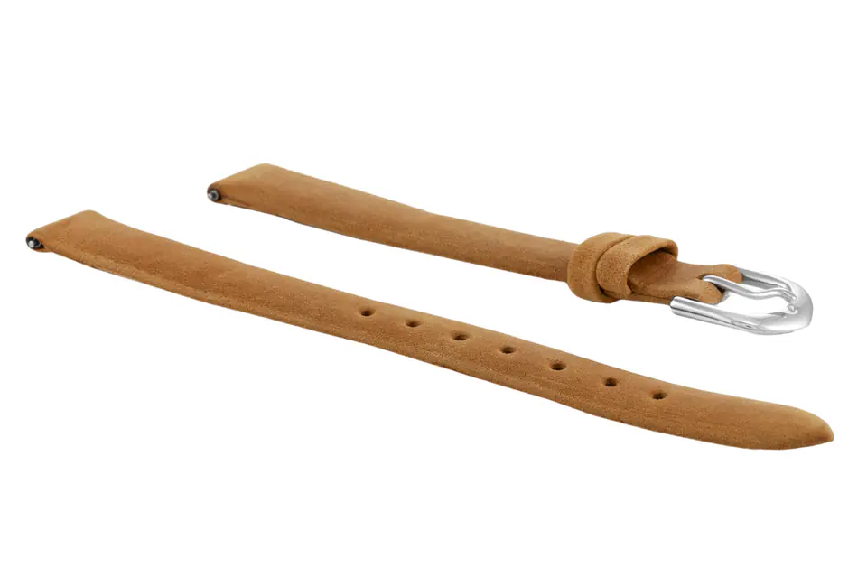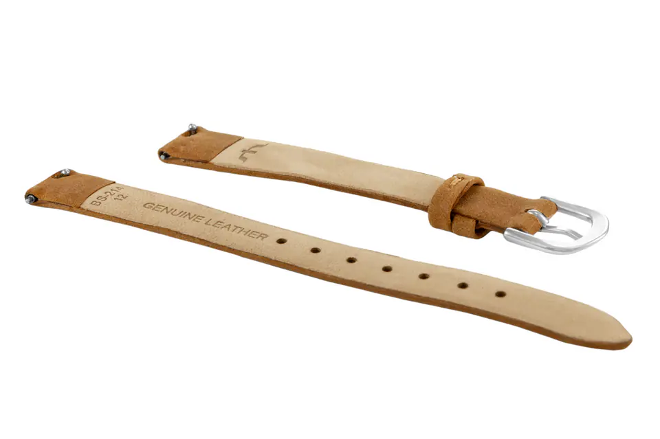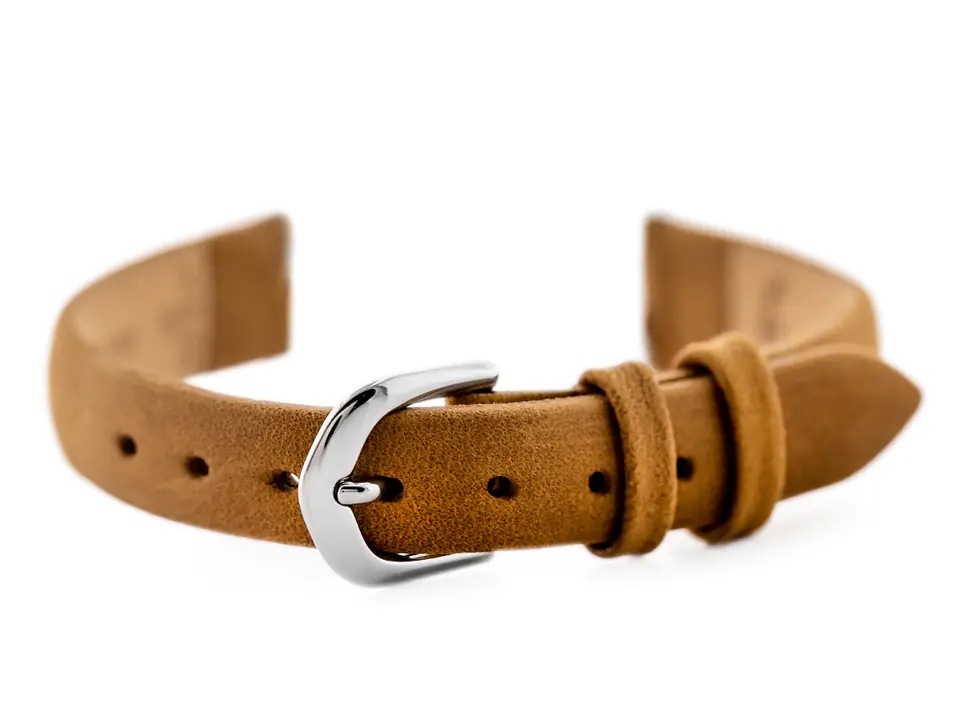 Pasek ze skóry naturalnej w kolorze brązowym. Klamerka ze stali szlachetnej w kolorze srebrnym.