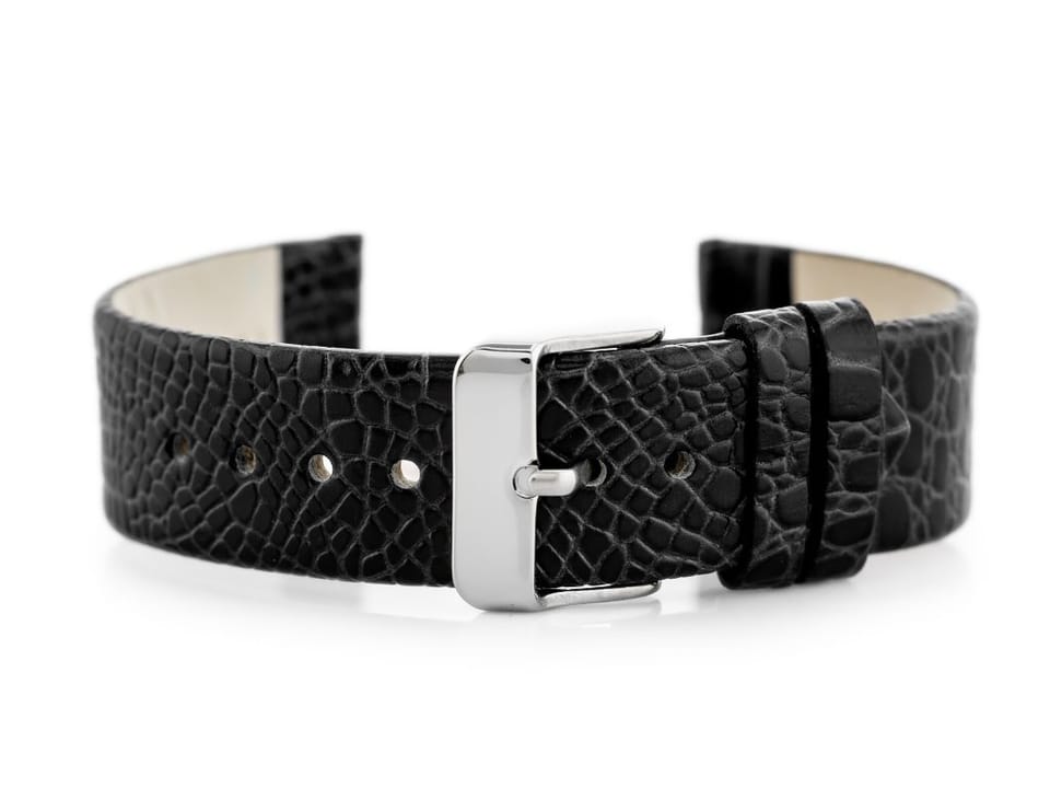 Pasek ze skóry naturalnej w kolorze czarnym. Klamerka metalowa w kolorze srebrnym.