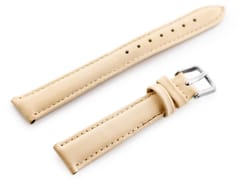 Pasek ze skóry naturalnej w kolorze beżowym z beżowymi przeszyciami. Klamerka metalowa w kolorze srebrnym.