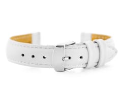 Pasek ze skóry naturalnej w kolorze białym z białymi przeszyciami. Klamerka metalowa w kolorze srebrnym.