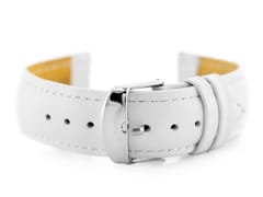 Pasek ze skóry naturalnej w kolorze białym z białymi przeszyciami. Klamerka metalowa w kolorze srebrnym.