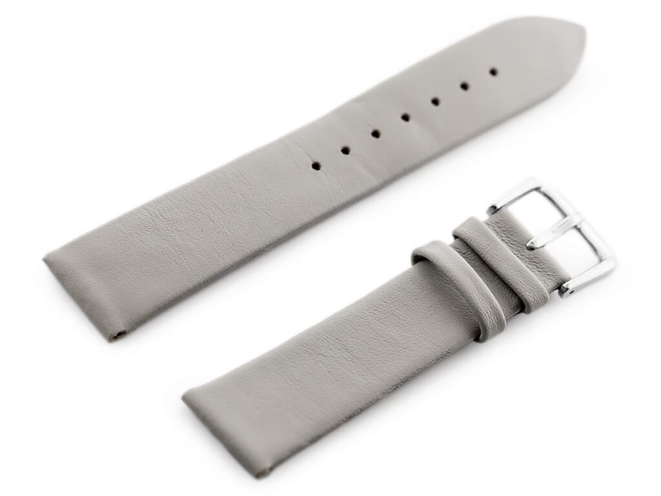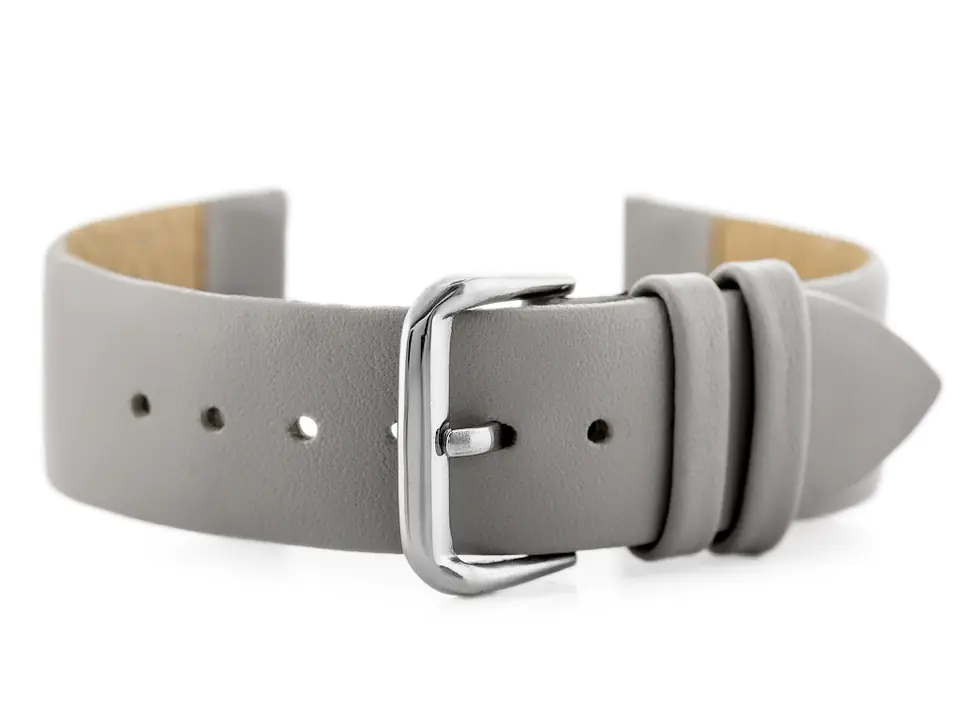 Pasek ze skóry naturalnej w kolorze szarym. Klamerka metalowa w kolorze srebrnym.