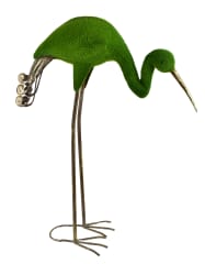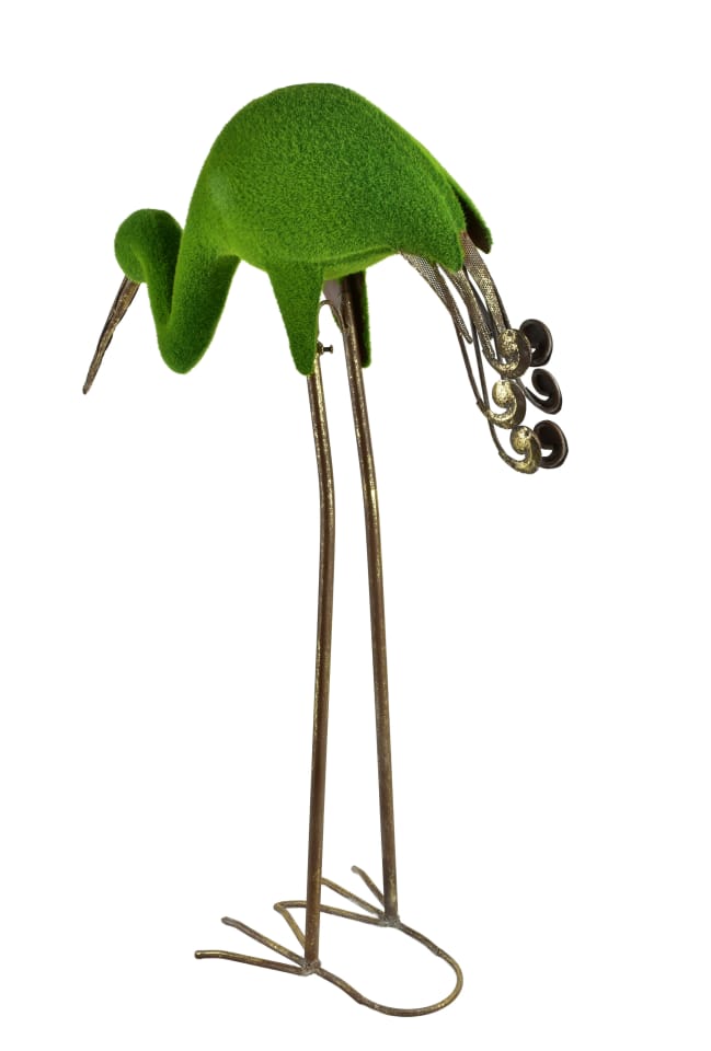 Figura PASSARI o wymiarach 58 23,5 79,4 cm to dekoracja, która natychmiast przyciąga wzrok swoim oryginalnym charakterem. Wykonana z metalu w ciepłym, brązowym kolorze, została obłożona imitacją zielonej trawy, co nadaje jej niepowtarzalny wygląd . jakby ptak właśnie wyszedł z ogrodowej gęstwiny lub był częścią fantazyjnej, bajkowej scenerii.Wysoka sylwetka i dopracowane proporcje sprawiają, że figura prezentuje się lekko i dynamicznie, a jednocześnie stabilnie stoi w przestrzeni. Zielona faktura dodaje jej miękkości wizualnej, świetnie kontrastując z metalową konstrukcją. To ozdoba, która wprowadza do wnętrza przyjemną dawkę humoru, a jednocześnie elegancji, sprawiając, że salon, taras czy loggia zyskują wyjątkowy, nieco zaczarowany klimat.PASSARI harmonijnie łączy naturalny motyw z dekoracyjną formą, dzięki czemu staje się wyrazistym, radosnym akcentem każdej aranżacji . idealnym dla osób, które lubią dodatki z nutą fantazji i ogrodowej świeżości. Zapakowana jednostkowo w folię bąbelkową.