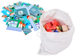Po skończonej zabawie klocki możemy wsadzić do materiałowego worka, który został dołączony do zestawu. Dzięki temu będzie łatwiej utrzymać czystość w domu :)