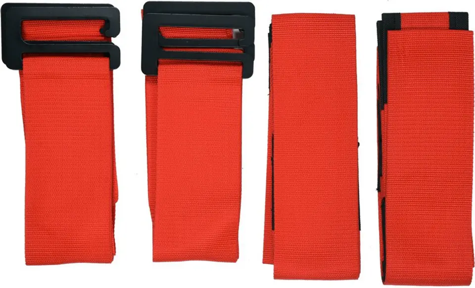 W zestawie 2 pasy -szelki ze stalowymi klamrami zakładane na plecy i 2 pasy podtrzymujące ładunek z wyściółką z wiskozy . Trzy opcje połączeń /długości/. kpl 4 szt . Do przenoszenia dużych , ciężkich ładunków np. mebli podczas przeprowadzki. Cztery pasy.