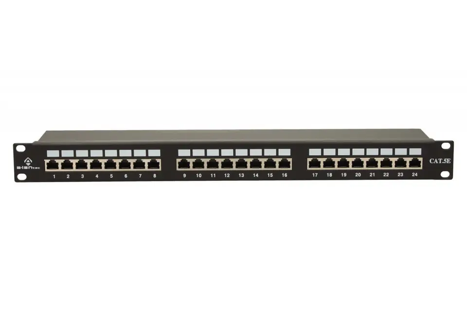 Podstawowy element systemu kategorii 5e zaprojektowany do wykonywania głównych i pośrednich punktów dystrybucyjnych w szybkich sieciach teleinformatycznych, narażonych na oddziaływanie zakłóceń elektromagnetycznych. 24 porty RJ45, oznaczania portów w formie opisowych wymiennych, wsuwanych wkładek papierowych. W panelach STP układ kompensacyjny zrealizowany bezpośrednio na płytce drukowanej. Uniwersalne złącze oznaczone szczelinowe, kompatybilne ze złączami LSA z sekwencją 568A/B. Panel wyposażony w półkę montażową w skład zestawu wchodzą elementy mocujące oraz opaski kablowe.