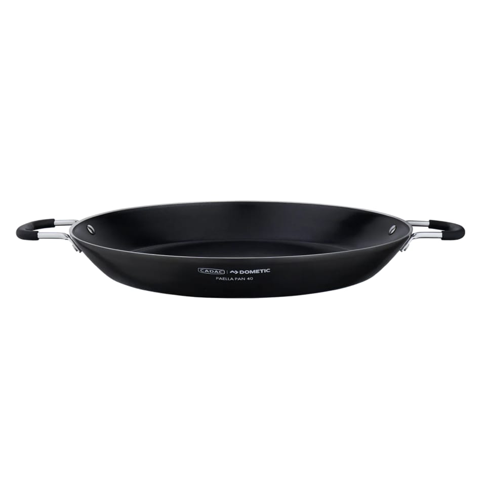 Ta lekka jednakże wykonana z grubego aluminium patelnia ma nieprzywierająca powierzchnię i jest łatwa do umycia. Rączki ze stali nierdzewnej ułatwiają obsługę. Ta patelnia doskonale nadaje sie do przygotowywania takich potraw jak: risotto, paella, dania z makaronem czy śniadania. Pasuje do grilli CADAC serii Citi Chef 40 / Carri Chef 40 lub każdego innego grilla gazowego lub domowej płyty gazowej. Spód patelni jest gładki ze stalowym wykończeniem.