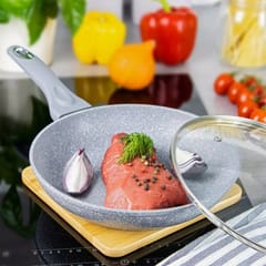 Patelnia z niezwykle trwałą powłoką granitową oraz szklaną pokrywą w zestawie